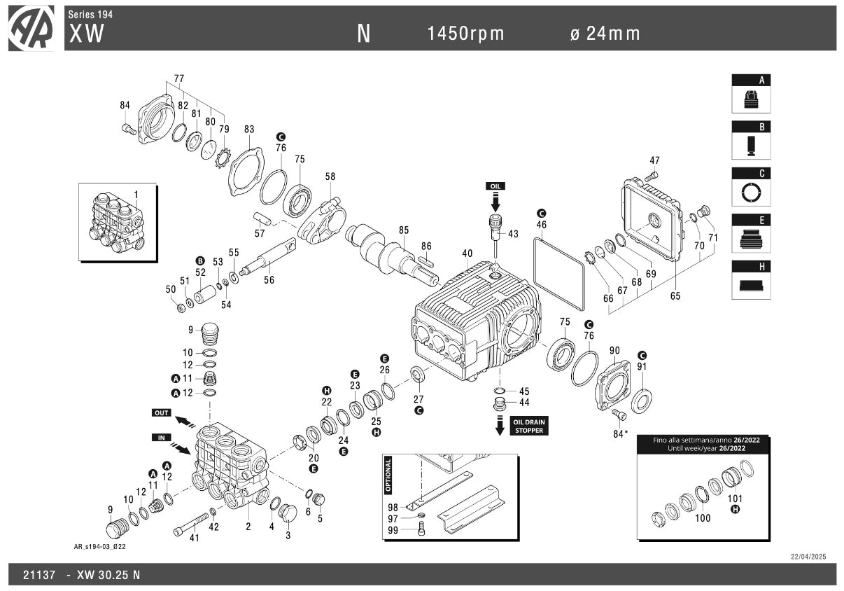 Ask about XW 30.25 Annovi Reverberi Solid Shaft Pump – 30 l/min @ 250 Bar, 1450 RPM, 24mm Shaft – Part No: XW30.25