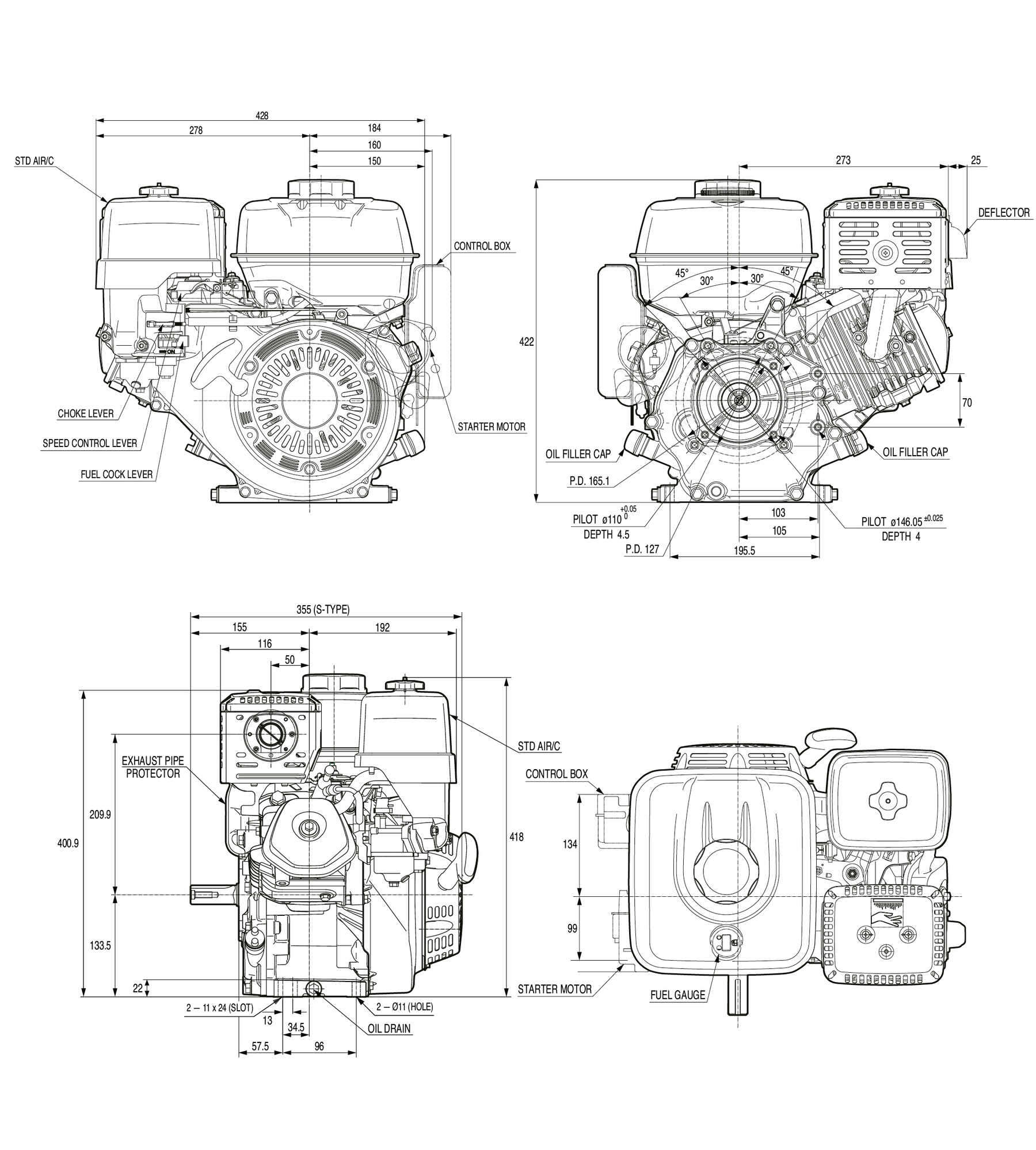 This model is fitted with recoil start and oil alert, protecting the engine from damage due to low oil levels. Built with Honda’s trusted air-cooled 4-stroke OHV design, the GX240 combines high output with long engine life and excellent fuel efficiency.